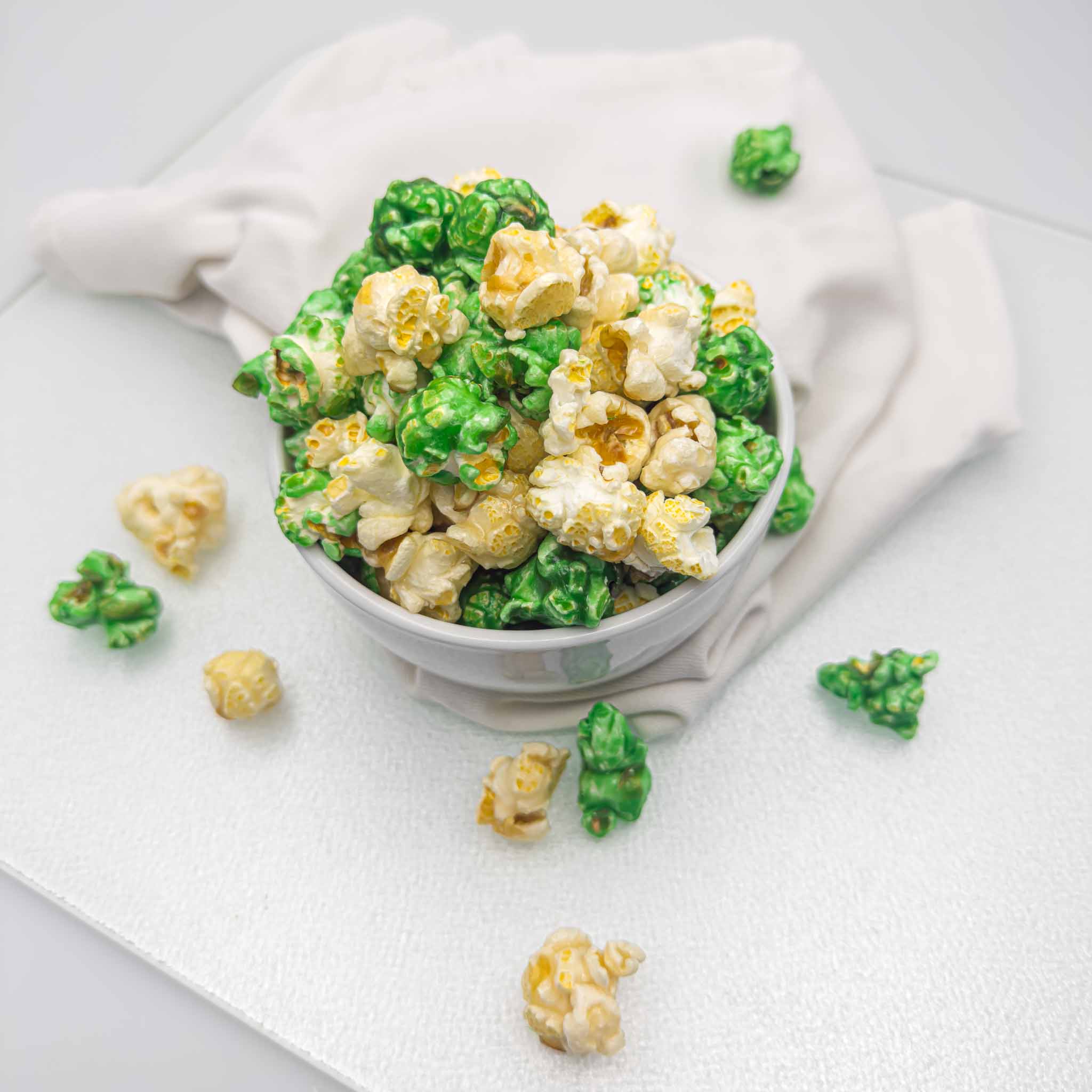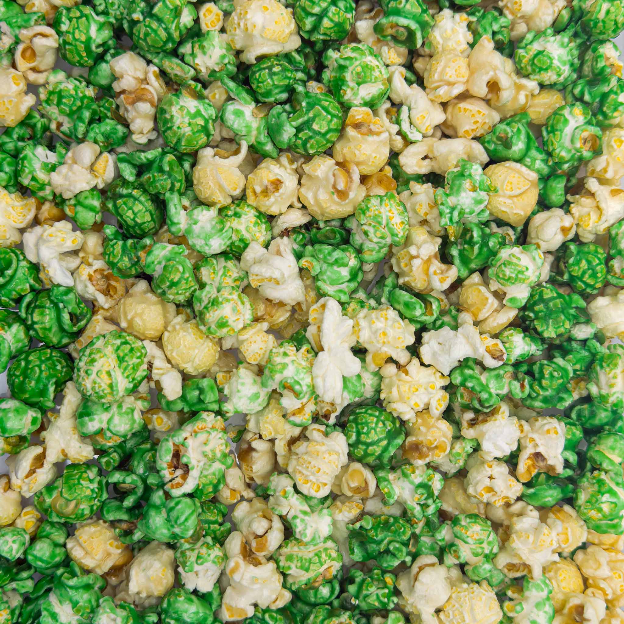 Our Shamrock Popcorn is a sweet vanilla-flavored delight dressed in green and white for a festive touch. Each crunchy bite delivers a smooth, creamy vanilla flavor that’s simple, nostalgic, and perfectly balanced.